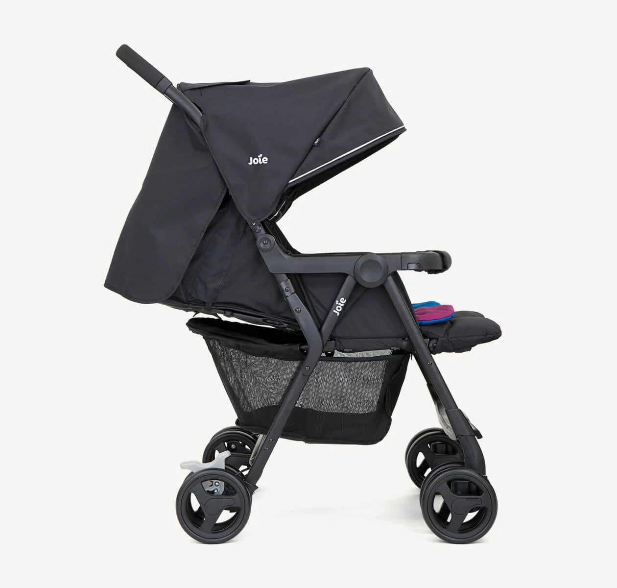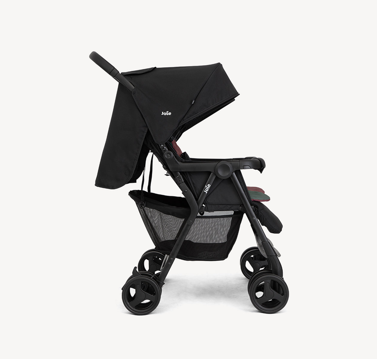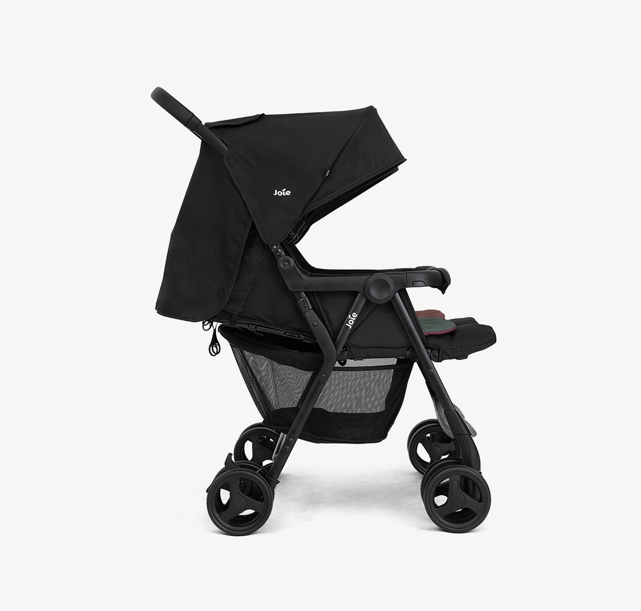Double the passengers doesn’t mean double the heft – at 12 kg, this double stroller is easy to manoeuvre and one of the lightest of its kind. Its precision aluminium frame is easy to tuck away or tote along on your travels.