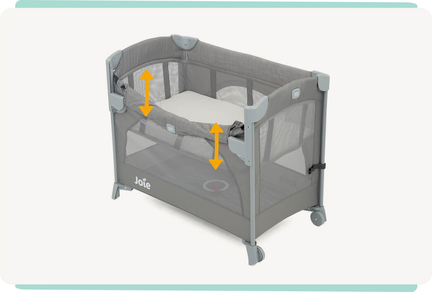 - Side panel slides up or down with the push of a button and with just one hand to give you easy access to baby