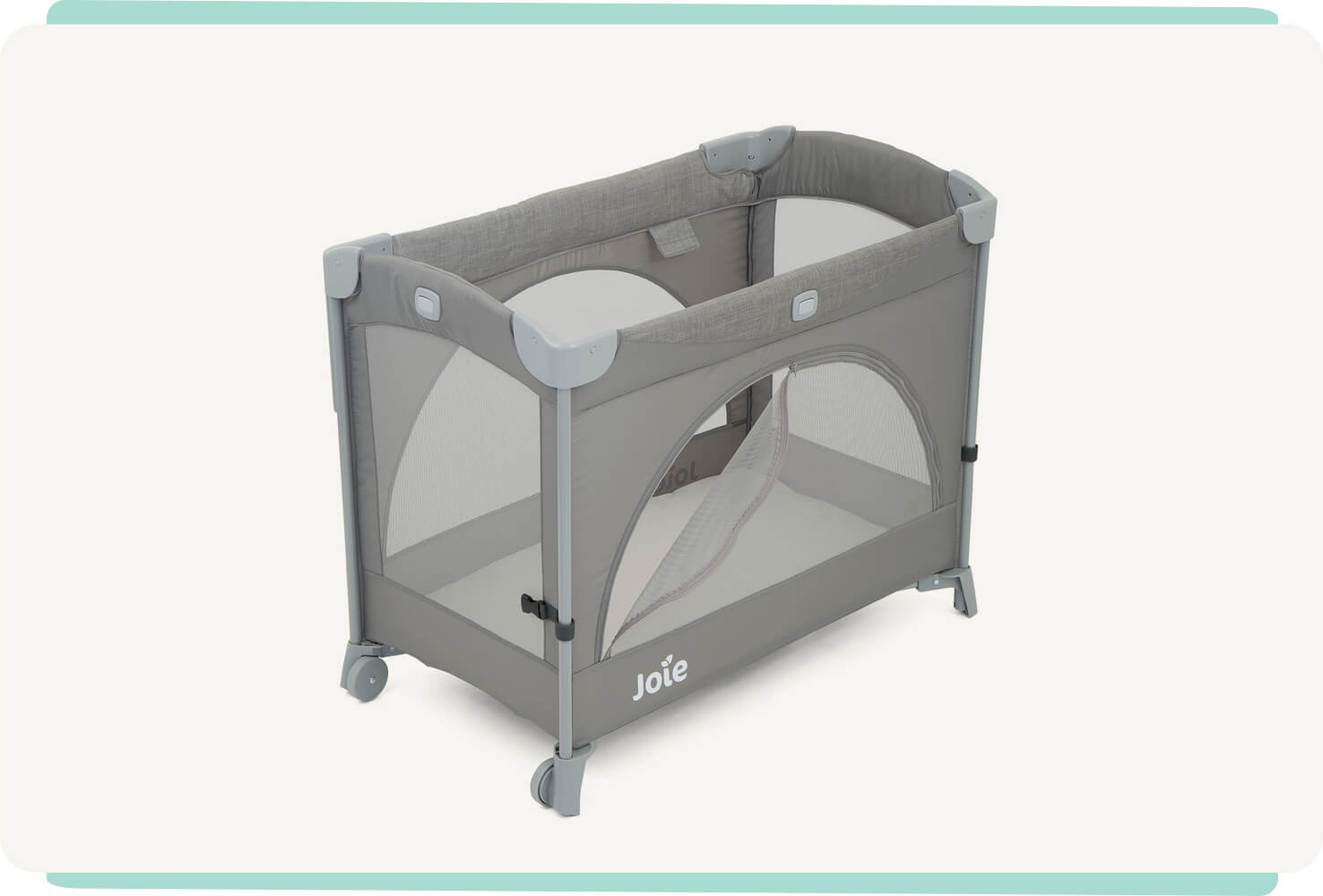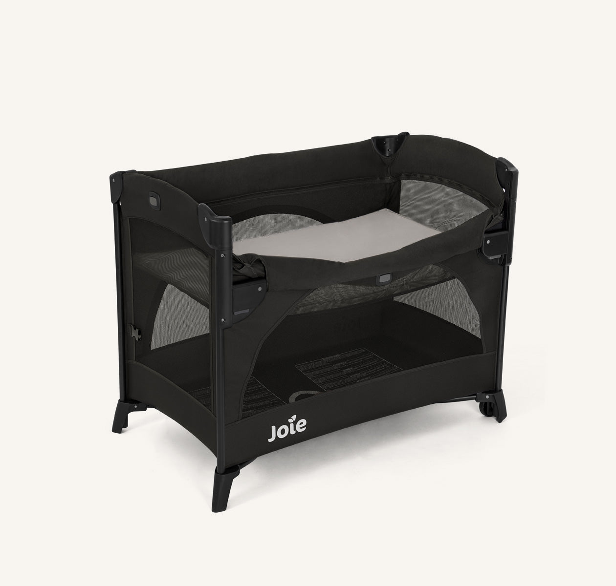 - Two integrated wheels make moving this travel cot from space to space easy for anyone