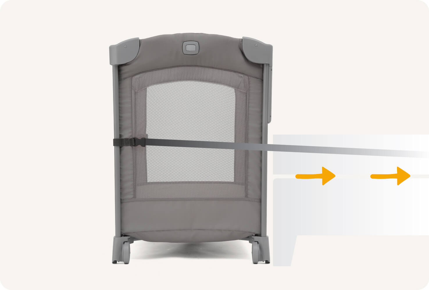 - Secure straps wrap around your bed frame or mattress and clip tight to keep the cot connected to your bed